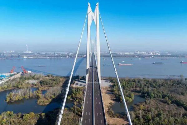 After five years of construction the Nanjing Xingshengwei Yangtze River Bridge in eastern China has opened to traffic, carrying six bi-directional expressway lanes. China Communications Construction Company reports that its total length is 13km and its concrete towers are 264m tall.
