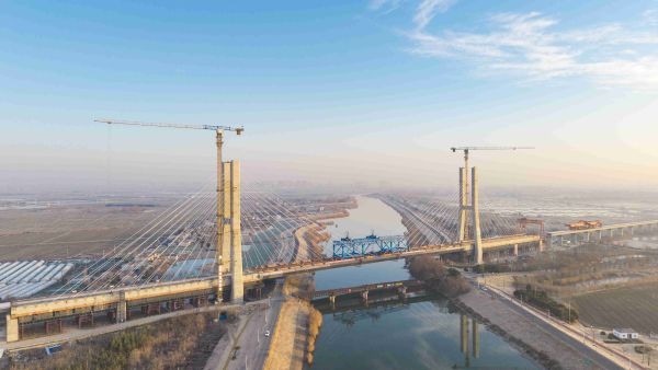 China Railway Group has joined a cable-stayed high-speed rail bridge over the Chu River.