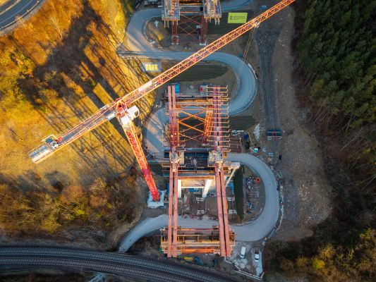 High above the Neckar Valley, the viaduct takes shape. Credit PORR